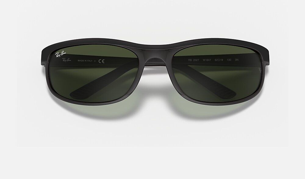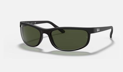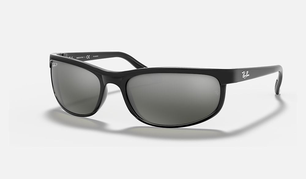 Wear RB2027 Predator 2 Sunglasses in a black frame and a variety of lens treatments including Polarized Sunglasses, mirror grey solid, crystal green solid and silver gradient.