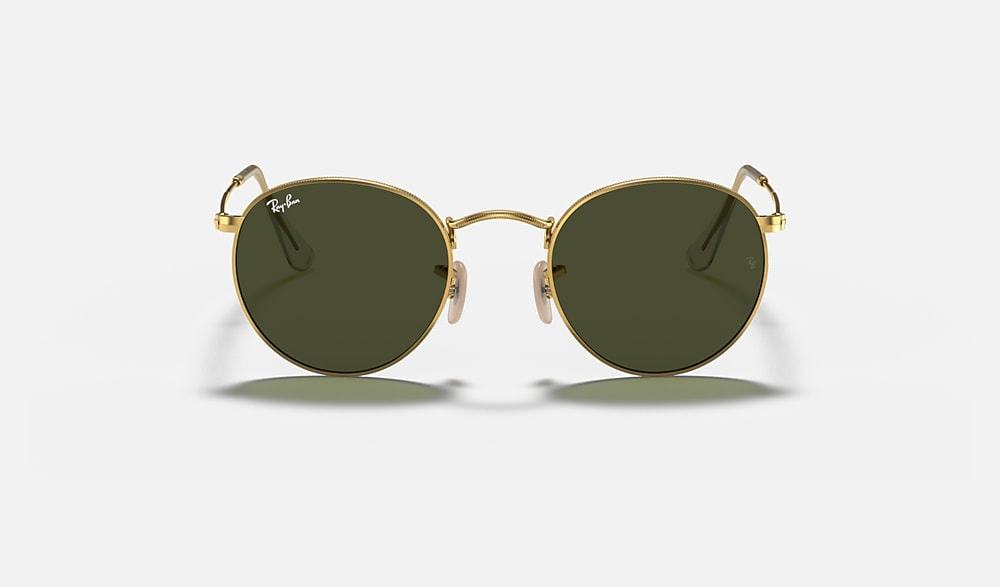 The Ray-Ban ® Round Metal sunglasses are totally retro. This look has been worn by legendary musicians and inspired by the 1960s counter-culture when this style first originated.The Ray-Ban unisex metal, iconic Sunglasses are known for their defined round crystal lenses and distinct shape. A curved brow bar, adjustable nose pads, and thin metal temples with plastic end tips rest comfortably behind the ears. Available with Legend Gold lens logo, straight from the archive.