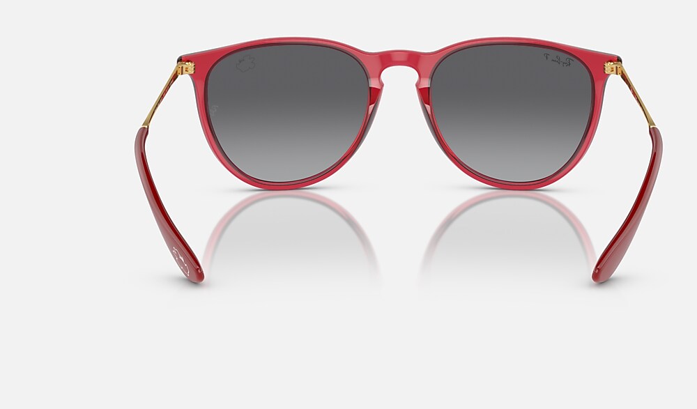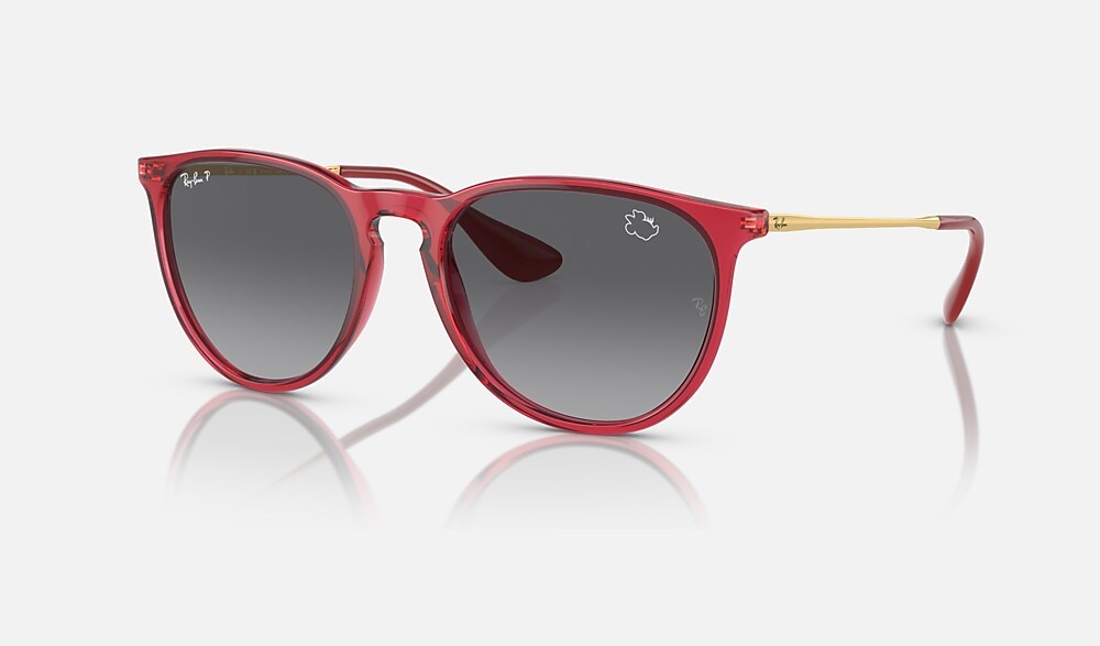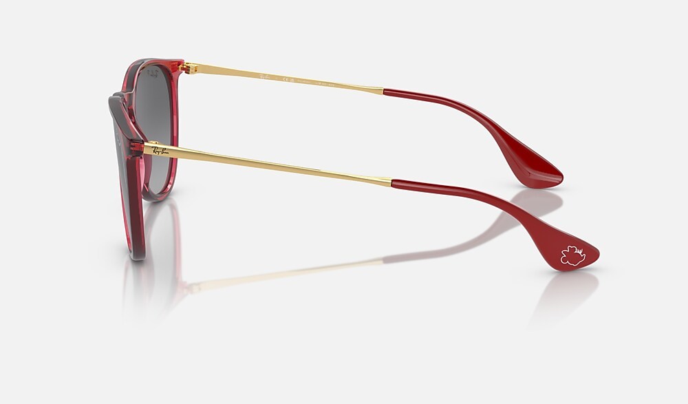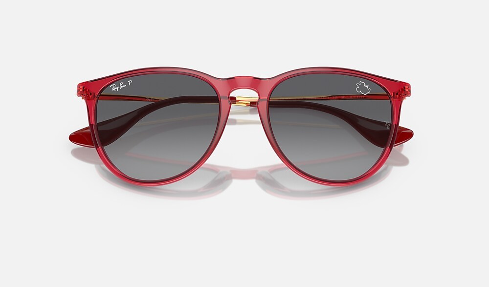 A special edition style from the Ray-Ban X Disney collection celebrating one of Disney’s most stylish characters: Minnie Mouse. This unique Erika has a striking gold metal and transparent red frame paired with gray-gradient Polarized lenses. Minnie’s inimitable profile, featuring her iconic bow and eyelashes, is subtly etched on both the right lens and temple tips to complement Erika’s understated design. Every pair comes in an exclusive red case and box, complete with a certificate of authenticity.