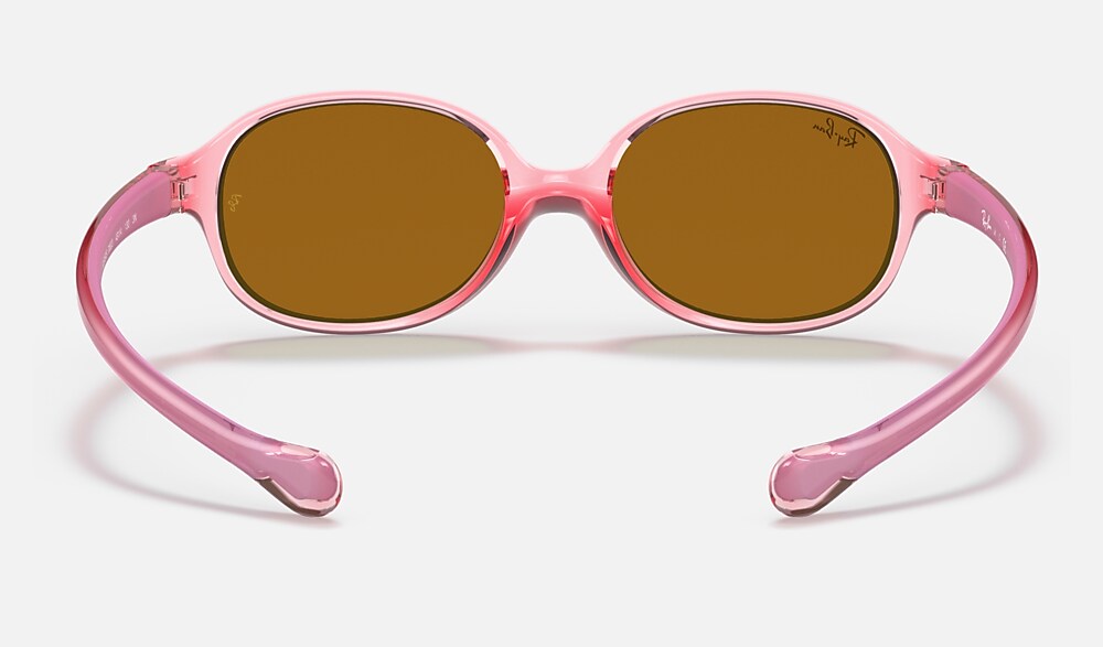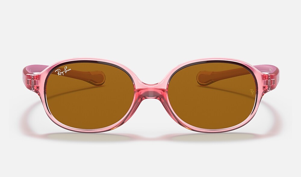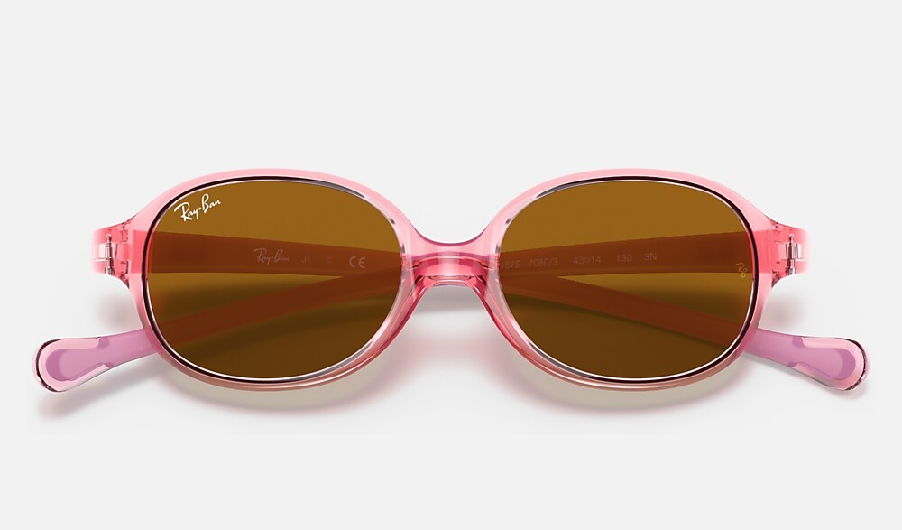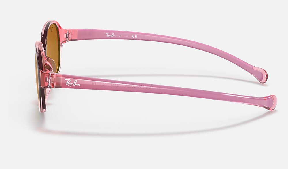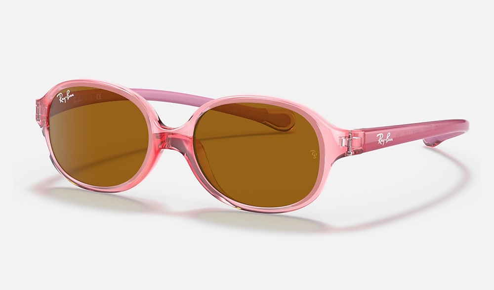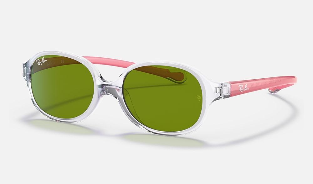 Ray-Ban iconic optical frames now come in a new sun version for babies and children up to three years. Playful and in glossy colours, they reflect a fun shine while also protecting little eyes. Ultra-resistant, light and safe, this pair is available in a wide variety of transparent colours.