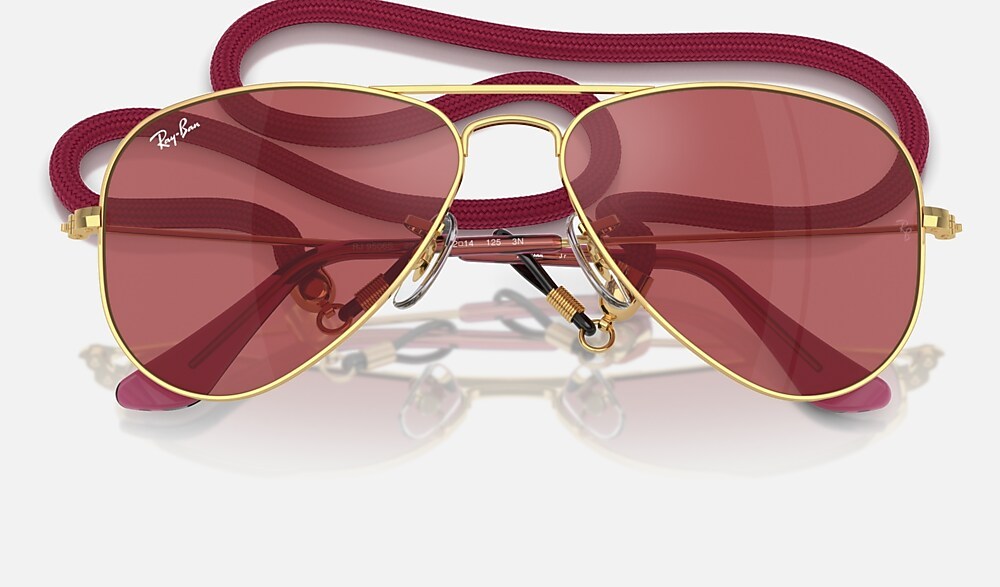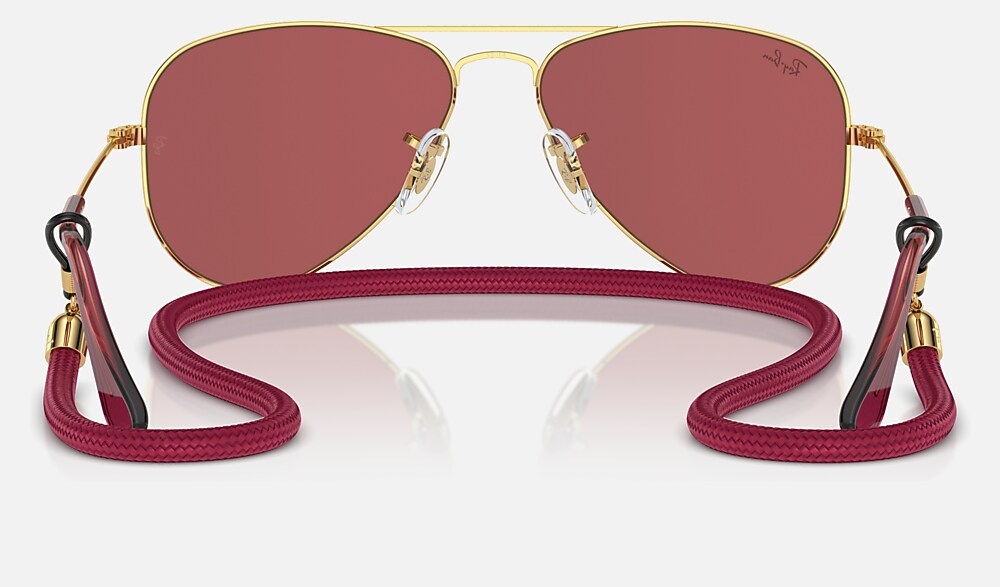 The iconic mini Aviator sets out to explore new horizons in four bold colorways that were made for the great outdoors. Featuring the unmistakable pilot shape of the original sunglasses, these fun frames are ready for anything with solid tinted lenses and matching lanyards. Buckle up and enjoy the ride with these unstoppable new shades, featuring 100% UV protection and a fresh summer vibe.