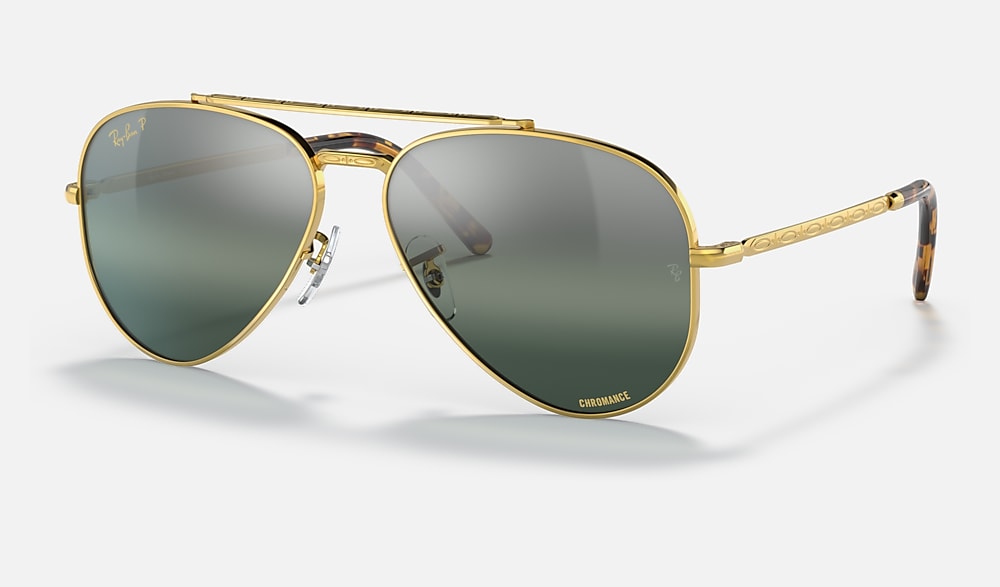 Launched in 1937 to protect our fighter pilots against the sun's rays, today the Aviator gets a full restyle. Discover the New Aviator, an evolution of our iconic Ray-Ban style with premium engravings on the frames and double bridge. Available in a range of colour combinations including chromance crystal lenses.
